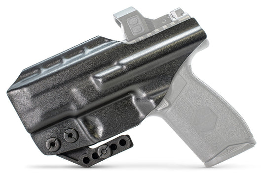 Equip your optics-enhanced firearm with the precision and reliability of our Optics Ready Holsters collection at CYA Supply Co., your trusted American manufacturer of premium concealed carry solutions. 1 As a veteran-owned and family-operated business, we recognize the growing popularity of red dot sights and the need for holsters that accommodate these essential upgrades. Our Optics Ready Holsters are meticulously designed using advanced 3D modeling to ensure a perfect fit for firearms equipped with a wide range of red dot optics. Constructed from durable Boltaron, these holsters provide exceptional durability and secure retention, ensuring your firearm and optic are protected during everyday carry. 2 Whether you're seeking IWB holsters for deep concealment or models optimized for quick draw and accessibility, our Optics Ready Holsters collection offers a diverse range of options tailored to your specific firearm and optic configuration. Experience the peace of mind that comes with a holster designed to accommodate your optics-equipped firearm, and trust in the quality and craftsmanship of CYA Supply Co. to provide the perfect solution for your concealed carry needs.