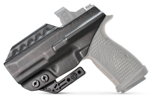 The Ridge IWB was designed to incorporate the most asked for features for the modern concealed carry holster. It allows for optics, look-through/suppressor sights, compensators, and threaded barrels. We incorporated the top of components such as the DCC Monoblock and a snagless ModWing concealment claw for superior performance. Can be worn from appendix all the way to small of back.