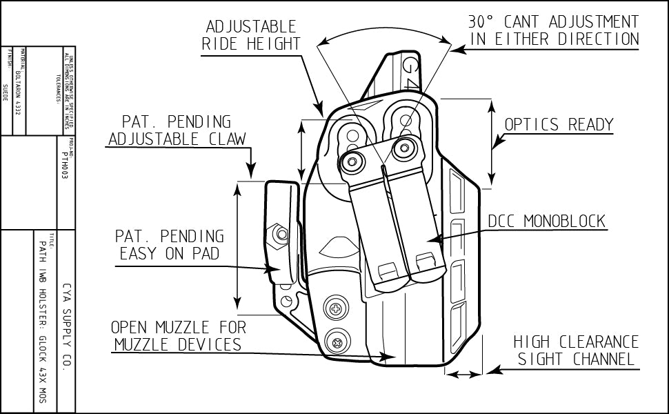 Our Path IWB holster for the Glock 19X was designed to allow for maximum adjustability in ride height and cant without sacrificing functionality.